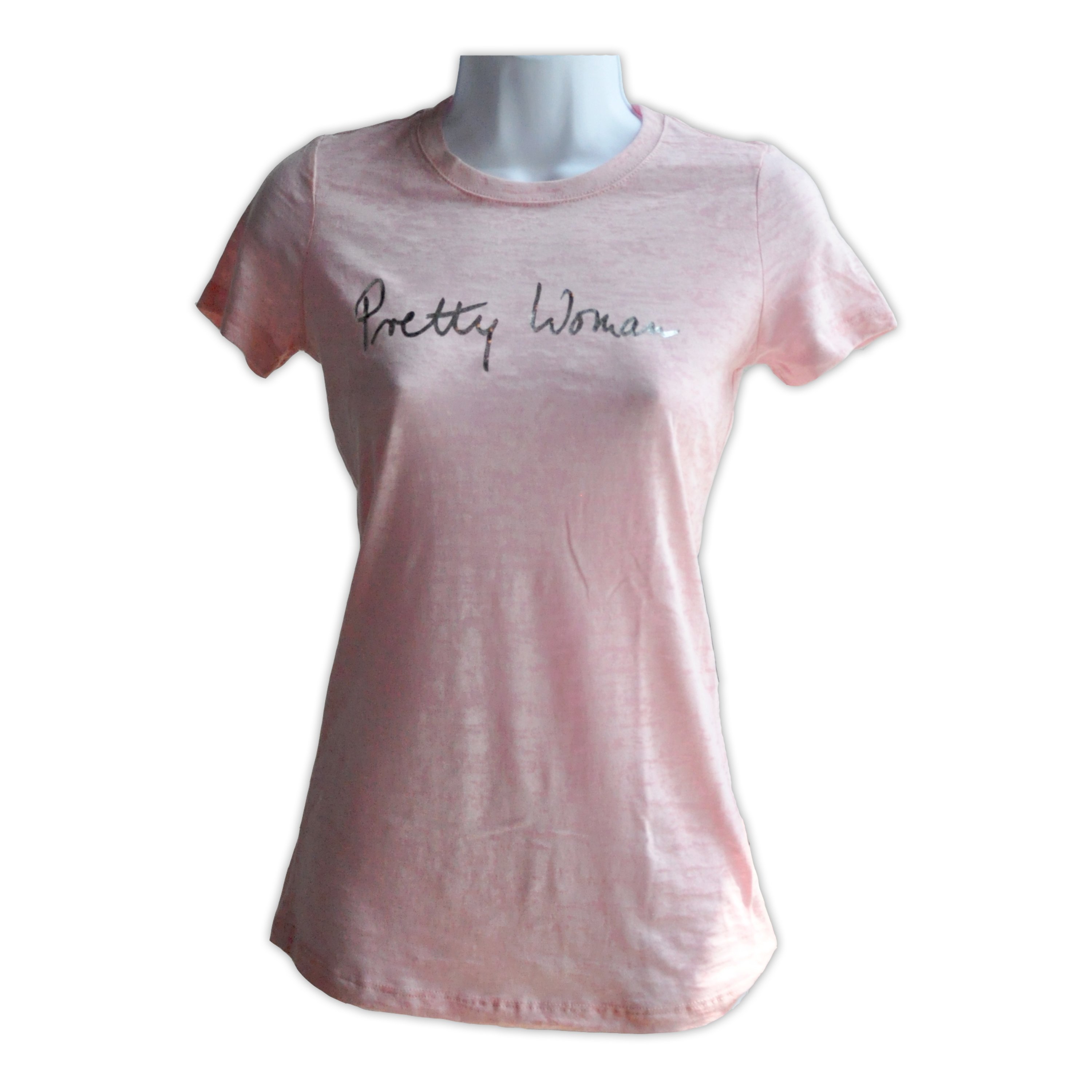 Pretty Woman t-shirt featuring the Pretty Woman logo in gold or silver.